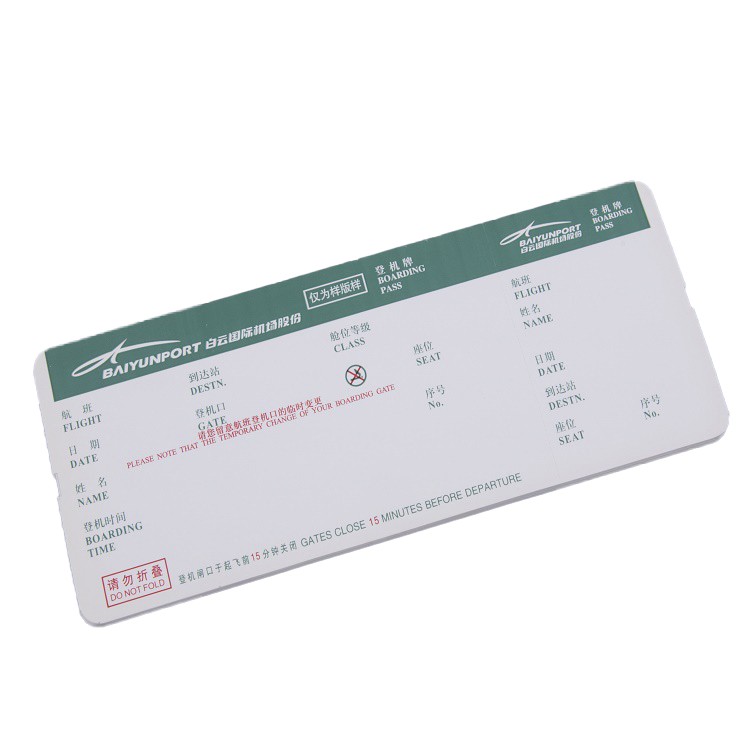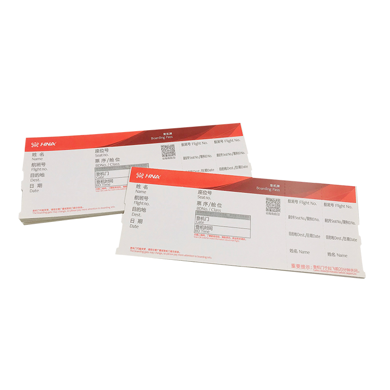 Kaip Kinijos gamintojas, turintis 30 metų patirtį spausdinimo pramonėje, Guangdong-Hong Kong (GZ) išmaniosios spausdinimo įmonė teikia didelio našumo įlaipinimo bilietus, kurie atitinka IATA standartus pasaulinei aviacijos pramonei. Mūsų produktai priėmė ISO 9001 kokybės valdymo sistemos sertifikatą ir kiekvienais metais 60 metų ir daugiau šalių teikia daugiau nei 200 milijonų oro bilietų į oro uostus.